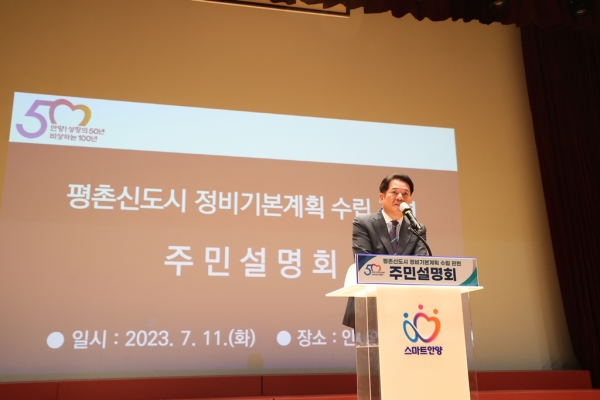 [금요저널] 안양시는 ‘평촌신도시 정비기본계획 수립 관련 주민설명회’를 열고 정비계획 방향 및 노후계획도시 특별법안 주요 내용을 설명하고 주민 의견을 수렴했다고 12일 밝혔다.