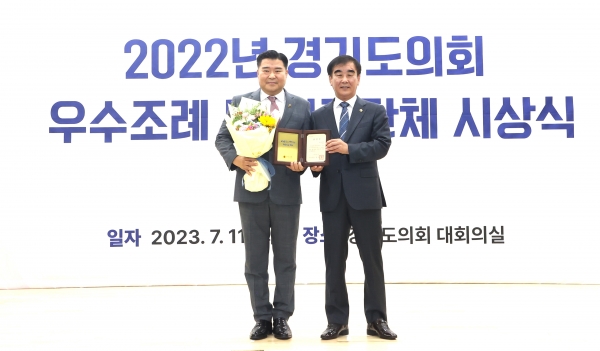 [금요저널] 경기도의회 문화체육관광위원회 이한국 의원이 대표 발의한 ‘경기도 사진 진흥에 관한 조례’가 경기도의회 우수조례에 선정되어 11일 대회의실에서 진행된 시상식에서 우수조례상을 수상하는 영예를 안았다.