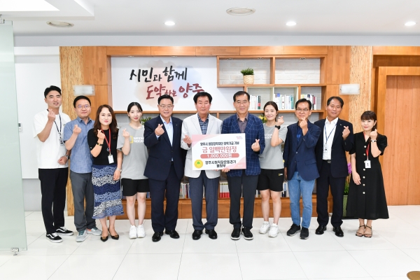 이날 기탁식에는 강수현 양주시장, 이진규 이사장을 비롯해 김정언, 김하은 선수와 남상칠 감독이 함께 참석했다.