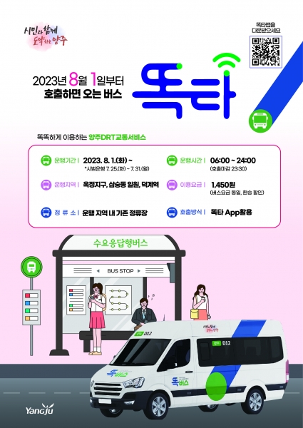 시 관계자는 “똑버스 운행으로 양주 시민에게 편리하고 안전한 출퇴근을 제공하길 기대한다”며 “많은 시민에게 편안한 이동 서비스가 제공될 수 있도록 노력하겠다”고 말했다.
