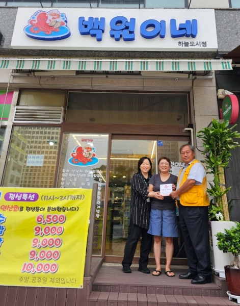 [금요저널] 인천시 중구 영종1동 지역사회보장협의체는 지난 14일 어려운 이웃을 위한 나눔 실천에 동참한 ‘백원이네 하늘도시점’을 방문, ‘착한가게’ 현판을 전달했다.