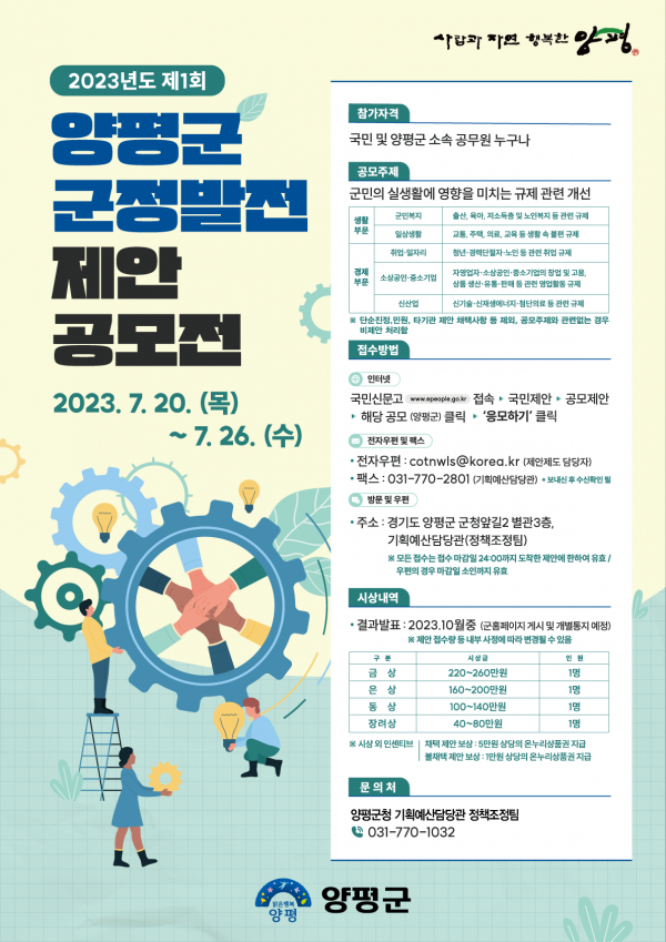 양평군, 2023년 제1회 군정발전 제안 공모전 실시