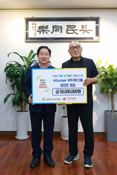 [금요저널] 귀뚜라미그룹은 19일 지역 내 어려운 이웃을 위한 후원금 5,000만원을 남양주시복지재단에 전달했다.