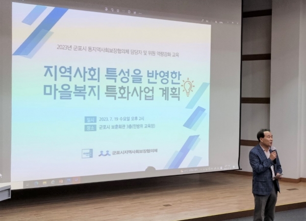 [금요저널] 군포시는 군포시지역사회보장협의체 주관으로 7월 19일 보훈회관 3층 민방위교육장에서 군포시 12개 동지역사회보장협의체 위원 및 사업담당 공무원 140명을 대상으로 역량강화 교육을 실시했다.