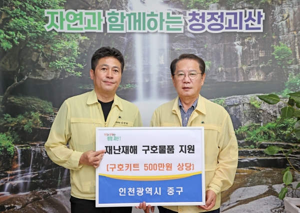 이번 지원은 자매결연 도시인 충북 괴산군을 돕고자 인천 중구 자원봉사자들이 자발적으로 뜻을 모아 추진됐다.