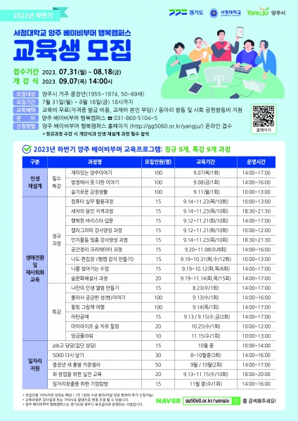 양주시, 하반기 양주베이비부머 행복캠퍼스 교육생 모집