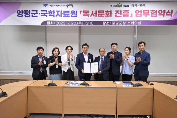[금요저널] 양평군은 지난 20일 군청 소회의실에서 국학자료원과 독서문화 진흥을 위한 협약을 체결했다고 밝혔다.