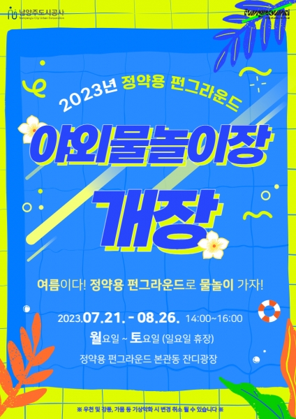 [금요저널] 남양주도시공사 정약용 펀그라운드에서는 물놀이장을 오는 7월 21일부터 8월 26일까지 개장한다고 밝혔다.