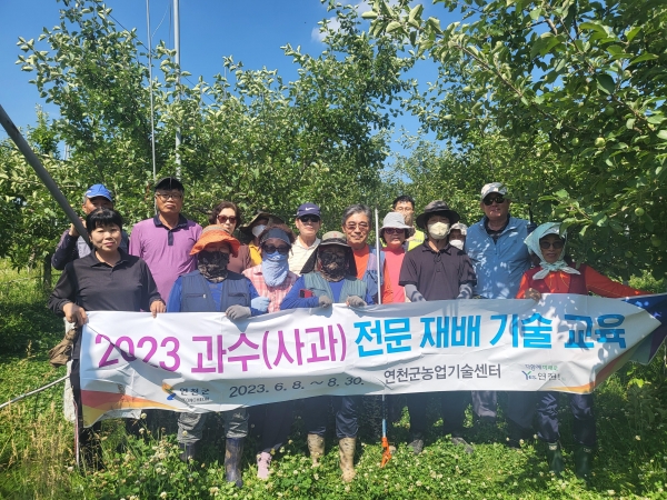 [금요저널] 연천군은 지난 6월 8일부터 사과재배 농업인 70명을 대상으로 “2023년 사과 전문 재배 기술 교육”을 실시하고 있다.