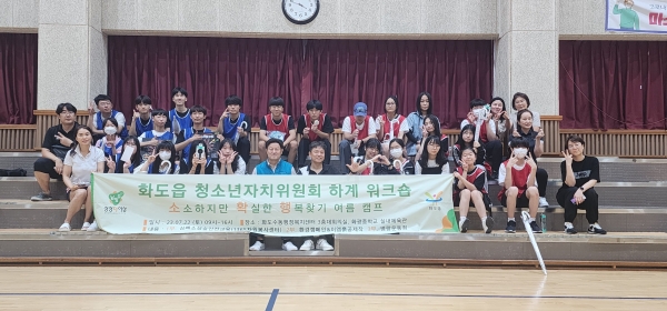 [금요저널] 남양주시 화도읍 청소년자치위원회는 지난 22일 화강중학교 체육관에서 청소년자치위원 25명과 화도읍 주민자치위원 11명 등 총 36명이 참석한 가운데 제5기 청소년자치위원회 하계 워크숍을 개최했다.