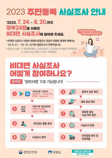 주민등록 사실조사는 비대면-디지털 조사를 진행한 후, 이장 및 읍·면 공무원이 거주지에 방문해 확인하는 방식으로 조사가 진행된다.