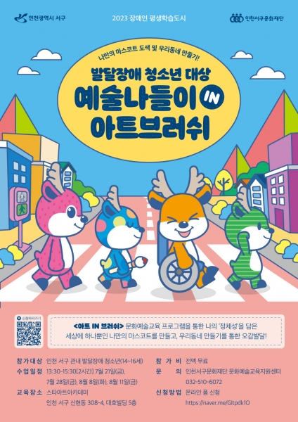 [금요저널] 서구문화재단 문화예술교육지원센터가 올해 인천 서구 장애인 평생학습도시 사업으로 8월까지 발달장애 청소년 대상 문화예술교육사업 ‘예술나들이 In 아트브러쉬’를 진행한다고 밝혔다.