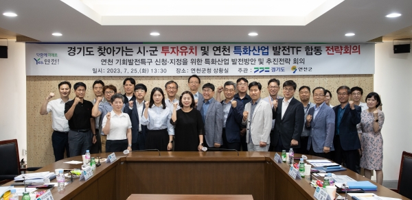 [금요저널] 경기도와 연천군은 지난 25일 군청 상황실에서 도-시군 투자유치 전략 합동회의를 열고 기회발전특구 지정을 위한 연천BIX 은통일반산업단지 내 특화산업 추진전략과 기업 투자유치 전략에 대해 논의했다.