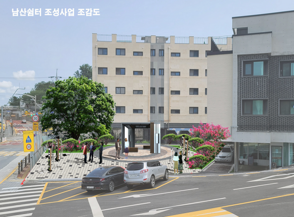 남산 쉼터는 ‘세대공감 쉼터’ 콘셉트로 낮에는 해와 함께 야외 운동기구로 운동하고 퍼걸러 안에서 독서할 수 있으며 밤에는 달과 함께 산책 의자에 앉아 남녀노소를 불문하고 명상에 잠겨 휴식할 수 있는 힐링공간이 될 것이라고 군 관계자는 밝혔다.