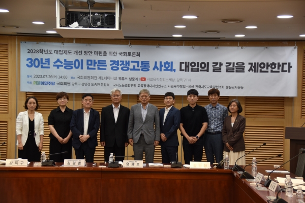 [금요저널] 국회 교육위원회 소속인 강득구 의원 은 지난 26 일 오후 2 시 , 국회 의원회관 제 1 세미나실에서 ‘30 년 수능이 만든 경쟁고통 사회 , 대입의 갈 길을 제안한다 ’ 를 주제로 2028 학년도 대입제도 개선 방안을 제시하는 토론회를 개최했다.
