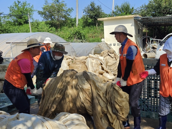봉사자들은 지난 7월 중순 집중호우로 극심한 피해를 겪은 부여군 비닐하우스 농가를 찾아 쓰러진 하우스를 일으켜 세우고 침수 농작물을 세척하고 찢어진 비닐을 제거하는 등 구슬땀을 흘렸다.