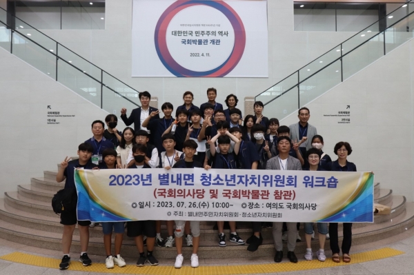 [금요저널] 남양주시 별내면 주민자치위원회는 2023년 주민자치 활성화 사업의 일환으로 지난 26일 여의도 국회의사당에서 ‘제4기 별내면 청소년자치위원회 하계 워크숍’을 개최했다.