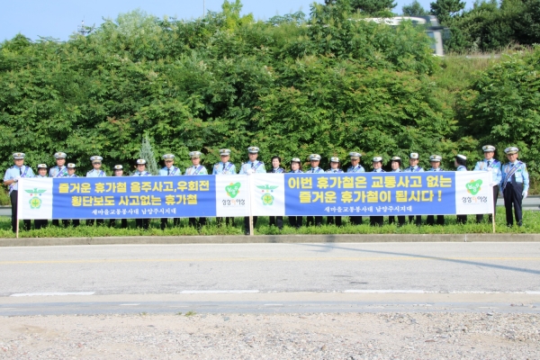 [금요저널] 새마을교통봉사대 남양주시지대는 지난달 30일 사능IC 고속도로 입구에서 휴가철 교통사고예방 캠페인을 실시했다.