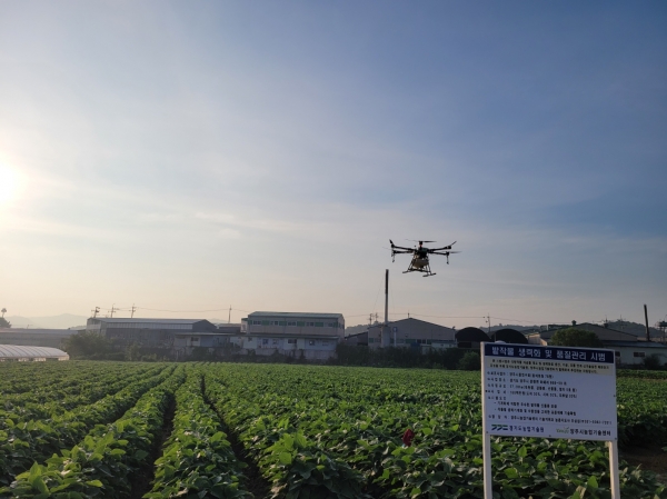 한편 ‘드론 공동방제 연시회 시범포장’은 경기도농업기술원에서 1억 8천만원 사업비를 지원받아 운영하는 밭작물 생력화 및 품질관리 시범사업장으로 콩 파종기, 드론 등 생력농기계, 농자재에 예산을 투입해 농촌일손 부족에 따른 노동력 절감 효과를 기대하고 있다.
