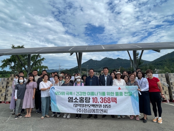 ㈜정금에프엔씨 정창교 회장은 “연일 길어지는 폭염으로 지친 취약계층에게 힘이 되길 바라는 마음으로 보양식을 준비했다”며 “기탁한 염소홍탕을 맛있게 드시고 더운 여름 건강하게 이겨내시길 바라고 앞으로도 지역과 상생하며 꾸준한 나눔으로 지역사회 발전에 기여하는 기업이 되겠다”고 전했다.