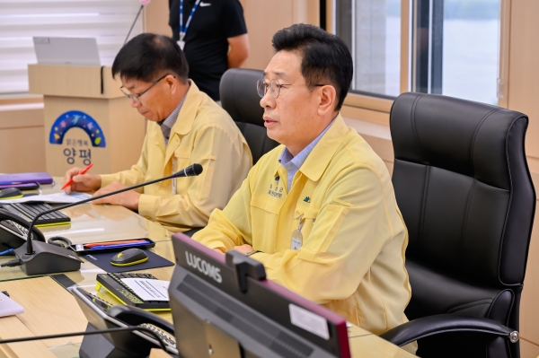이에 전진선 양평군수는 인명피해가 우려되는 산사태 취약지역, 급경사지, 인·허가지 등 재해취약지역 예찰 활동과 사전 안전점검 실시, 강풍으로 인한 옥외간판 등 낙하위험물로 낙하 방지를 위한 안전조치 철저, 하천변 침수 피해가 예상되는 산책로 저지대 도로의 선제적 통제, 침수 우려 주택 선제적 대피 권고 등을 지시하고 부서별 대응조치 방안을 논의했다.