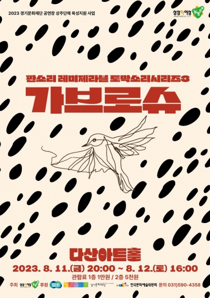 [금요저널] 남양주시는 8월 11일부터 12일까지 다산아트홀에서 상주단체의‘판소리 레미제라블 토막소리 시리즈3 ‘가브로슈’’를 개최한다고 밝혔다.