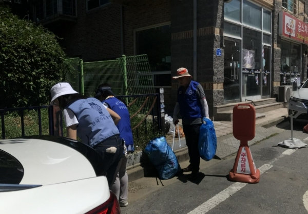 이날 회원들은 폭염에도 불구하고 호평평내행정복지센터 건너편 골목부터 새마을금고 앞까지 도로에 버려진 쓰레기를 주우며 거리 정화 작업을 진행했다.