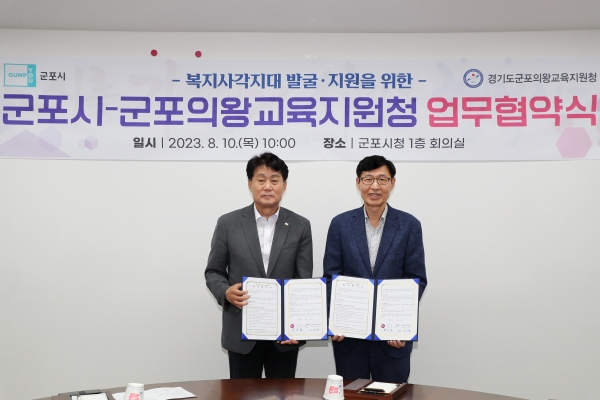 [금요저널] 군포시는 10일 군포의왕교육지원청과 위기학생과 가족들의 복지사각지대 발굴·지원을 위한 업무 협약을 체결했다.