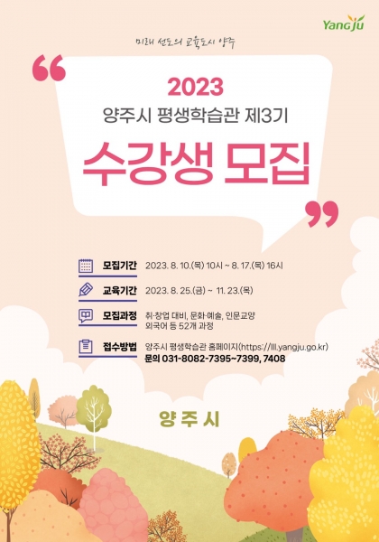 양주시, 2023년 제3기 평생학습관 프로그램 수강생 모집