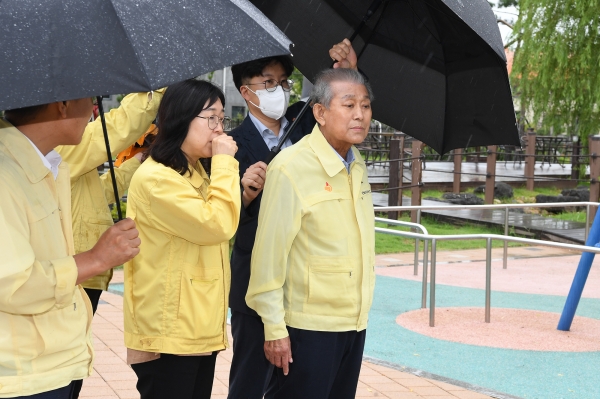 지난 10일 유천호 군수는 태풍 상황을 점검하고 알미골사거리∼장승교차로 도시계획도로 공사현장 갑룡공원 동락천 양수장을 찾아 현장점검을 실시하며 주민 안전과 피해 최소화에 철저를 기해줄 것을 당부했다.