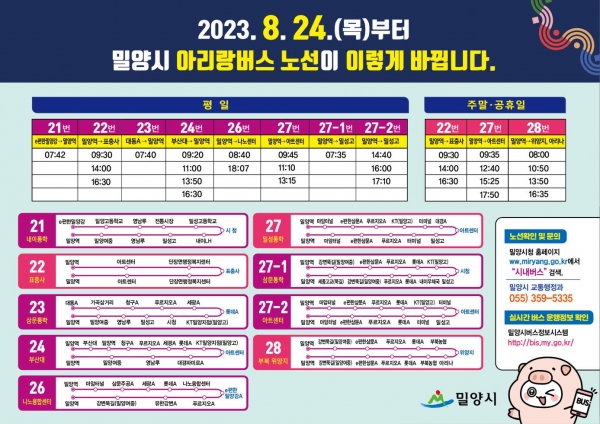 밀양시, 8월 24일부터 아리랑버스 개편 운행
