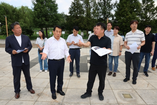 2022 경기정원박람회 개최지인 오산 맑음터공원을 방문한 나 시장은 “오산 맑음터공원은 캠핑장, 에코리움, 시민의 문화휴식 및 여가공간을 제공하는 대규모 생태공원으로서 배울 점이 많은 곳”이라며 “다양한 정원소재와 조성방법 등 최신 정원조성 경향을 황산공원에 적용할 수 있는 방안을 강구해달라”고 주문했다.