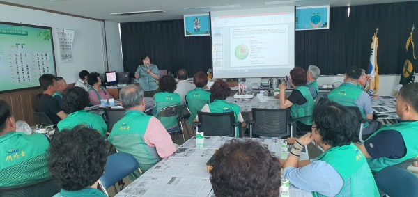 [금요저널] 밀양시새마을회는 21일 새마을회관에서 기후 위기의 심각성을 인식하고 탄소중립을 실천하기 위해 ‘1-DAY 녹색체험 교육’을 실시했다.