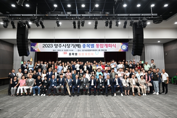 [금요저널] 양주시는 지난 19일 경기섬유종합지원센터 컨벤션홀에서 ‘2023년 양주시장기 종목별 통합 개회식’을 개최했다.