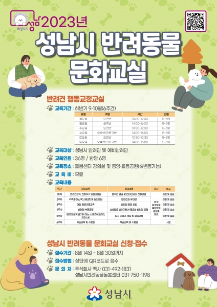 성남시, 하반기 반려동물 문화교실 신청 8월 30일까지