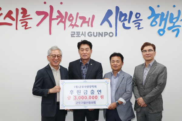 [금요저널] 군포기업인협의회는 8월 21일 시장실에서 군포사랑장학회에 300만원의 장학금 출연식을 가졌다.