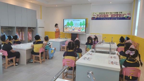이번 첫 수업은 남지어린이집 원아 13명을 대상으로 건강지킴이 ‘꼬마 영양사’라는 주제로 진행했으며 다음 달 22일까지 관내 어린이집 원아 124명이 교육을 접수했다.