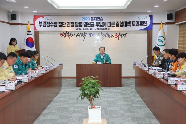 토의는 부림정수장에 적 특작 부대원이 침투해 집단 감염병을 발병시키는 병원균을 대량 투입해 정수장 시설물 파손 및 다수의 인명피해가 발생을 가정해 피해복구 대책 등을 중심으로 진행했다.