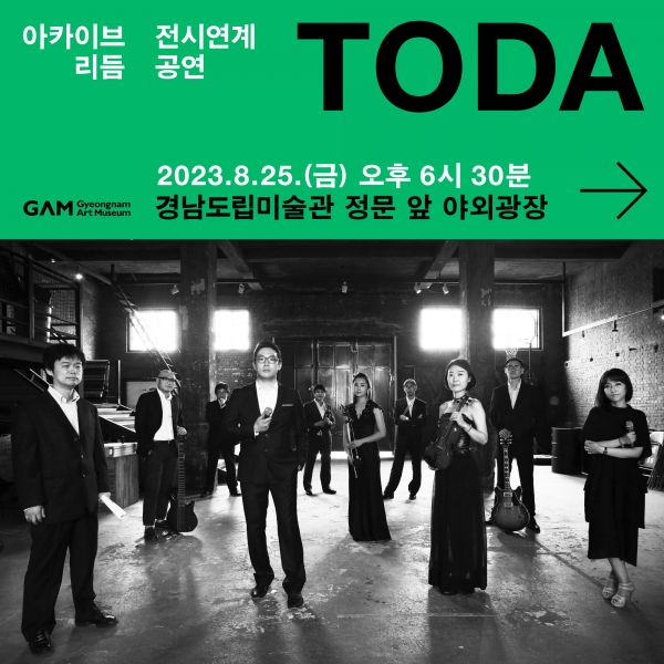 [금요저널] 경남도립미술관은 지난 7월 21일 개막해 성황리에 운영 중인‘아카이브 리듬’전시 연계로 오는 25일 저녁 6시 30분, 미술관 야외 광장에서 한국의 퓨전락그룹 “토다밴드” 공연을 개최한다.