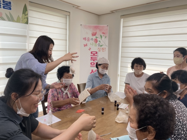 안지원 회원의 재능기부로 열린 이번 수업은 주민들에게 영상을 통해 ‘제로웨이스트란 무엇인가?’를 전달하고 천연 샴푸바 만들기, 코코넛 수세미 만들기 등 주민들과 함께 제로웨이스트를 체험하는 시간을 가졌다.