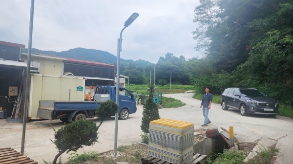 [금요저널] 함양군이 야간보행 취약지역에 태양광 충전식 LED조명을 설치해 주민들의 야간보행 안전을 확보하고 범죄예방 인프라를 구축하고 있다.