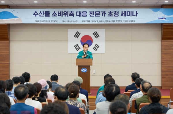 [금요저널] 통영시는 지난 23일 굴수하식수산업협동조합 대회의실에서 ‘수산물 소비위축 대응 전문가 초청 세미나’를 개최했다.