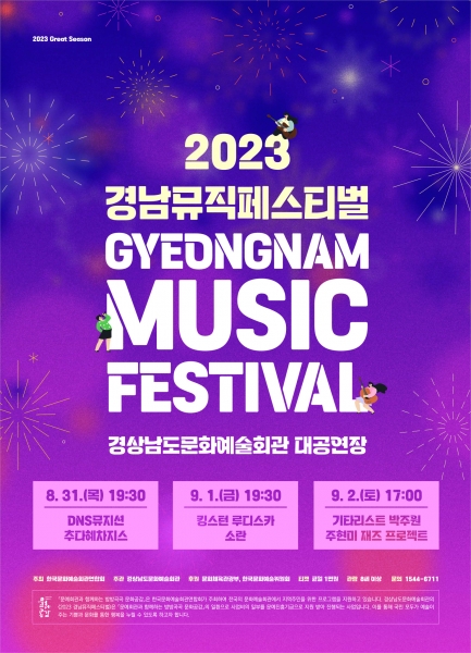[금요저널] 경남문화예술회관은 8월 31일부터 9월 2일까지 대공연장에서 2023 경남뮤직페스티벌을 개최한다.