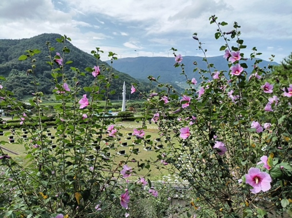 추모공원에는 중앙묘역 둘레에 8,000그루의 무궁화가 식재돼 있다.