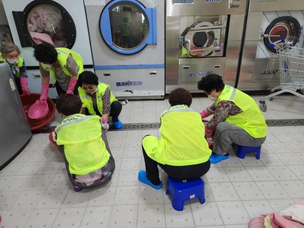 무료빨래방 사업은 가정 내에서 부피가 크고 무거워 세탁이 힘든 대형 세탁물을 청결하게 세탁·건조해 어르신들에게 제공한다.