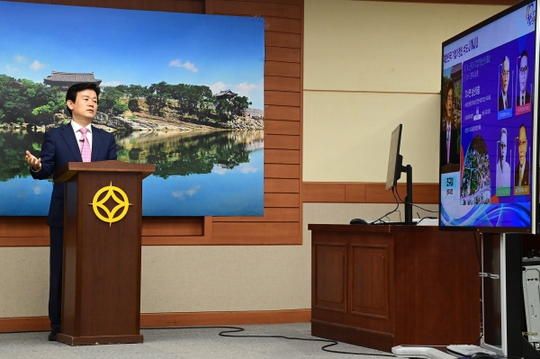 [금요저널] 조규일 진주시장은 24일 시청 5층 상황실에서 ‘한·인도네시아 기업가정신 최고경영자과정’에 초청받아 진주 K-기업가정신의 세계적 확산을 위한 특강을 했다.
