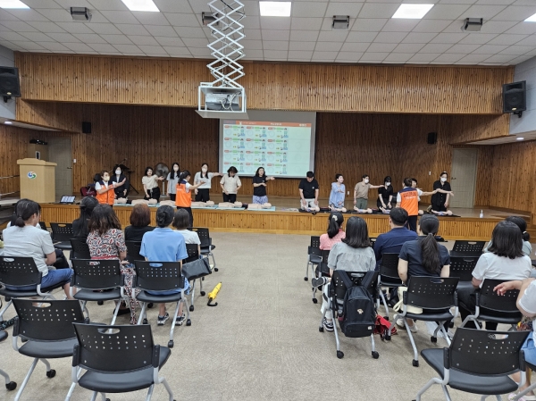 안전교육은 응급상황이 발생했을 때 신속하게 조치할 수 있도록 영아·소아·성인 대상 심폐소생술 자동심장충격기 사용법 기도폐쇄 시 대처방법 등으로 구성됐다.