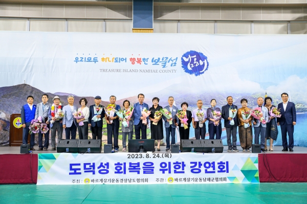 식전에 열린 도덕성회복 강연회에서는 장애인 인식 개선을 위한 ‘우리가 세상을 바꿉니다’라는 주제로 장홍이 남해군장애인연합회장이 강연을 했다.