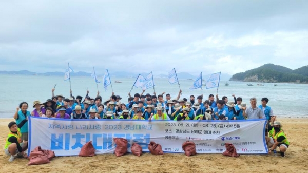 [금요저널] 경남대학교 총학생회가 주관하고 경상남도자원봉사센터와 4개 기업이 후원하는 ‘v-캠퍼스 경남대봉사단’의 비치국토대장정이 21일부터 25일까지 남해군에서 열렸다.