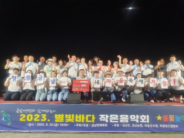 [금요저널] 하동군 금남면은 25일 오후 6시 금남면 생활체육관 내 특설무대에서 마을주민 200여명이 참여한 가운데 금남면체육회가 주관한 2023 별빛바다 작은 음악회를 성황리에 마쳤다고 28일 밝혔다.